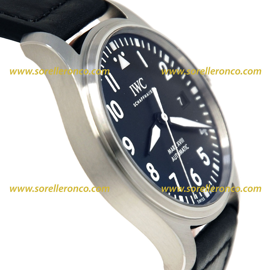 Iwc Aviatore Pilit's Mark XVIII rispetto al precedente modello è stata sostituita l’indicazione della tripla data e sono state ridotte di un millimetro le dimensioni dell’orologio, portandolo agli attuali 40 mm.