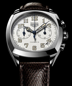 Heuer Pre-Monza. The cushion-shaped bezel provides the