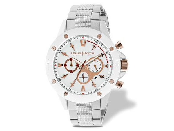 Orologio Cesare Paciotti White Frozen cronografo con movimento al quarzo, cassa in acciaio, vetro minerale, cinturino in acciaio, impermeabile 50mt.
