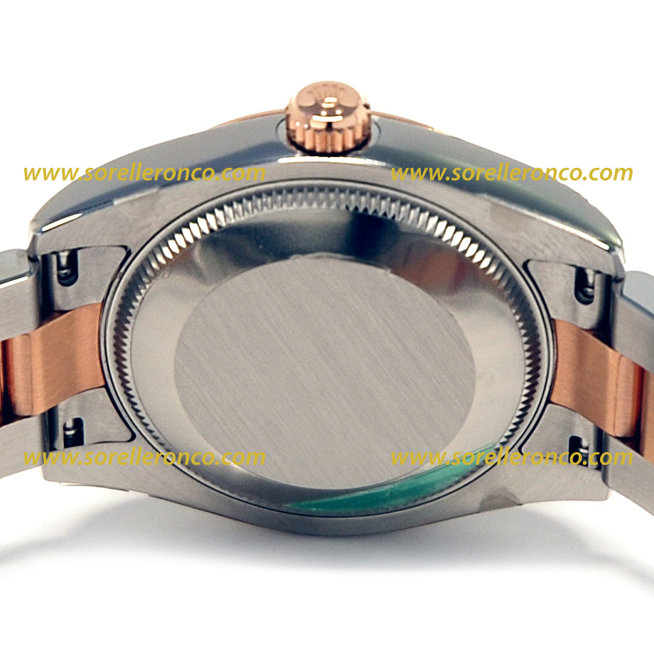 Questo Rolex Datejsut con cassa in acciaio da 31mm è reso ancora più elegante dalla ghiera e lle maglie del bracciale Oyster in Oro Everose: una speciale lega in oro rosa da 18 carati brevettata da Rolex..