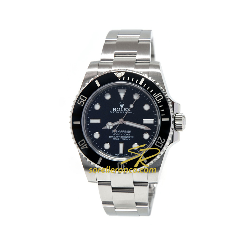 Nuovo modello Rolex Submariner con quadrante nero e datario a ore 3. Cassa da 40 millimetri in oro giallo 18kt su cui spicca la ghiera in ceramica nera.