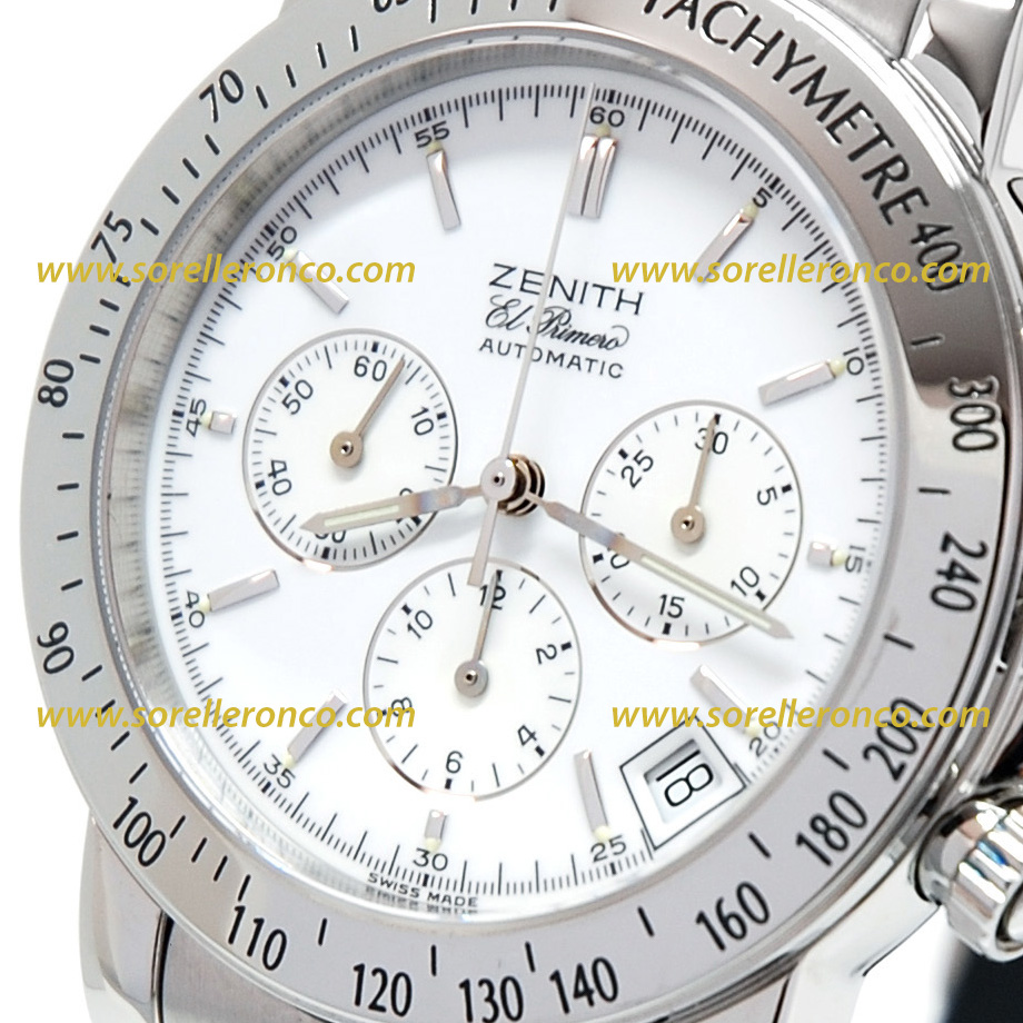 Orologio Zenith El Primero Rainbow con cassa in acciaio da 39mm. Quadrante Bianco con datario a ore 4.