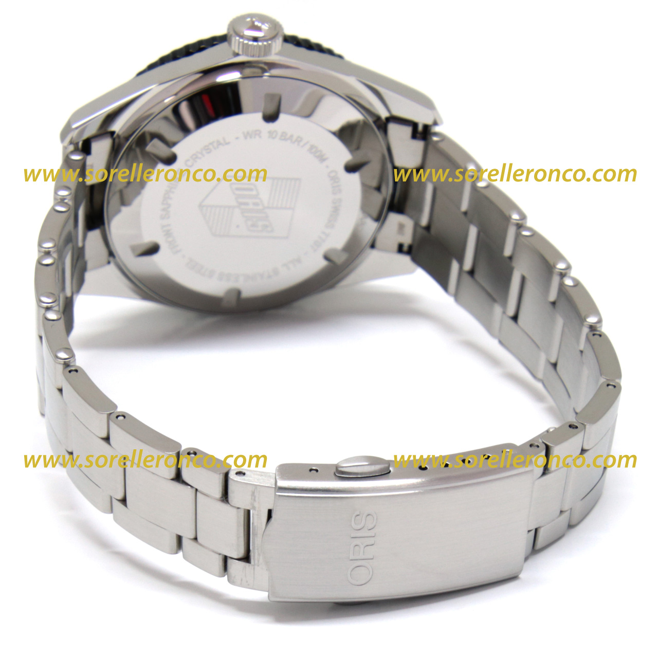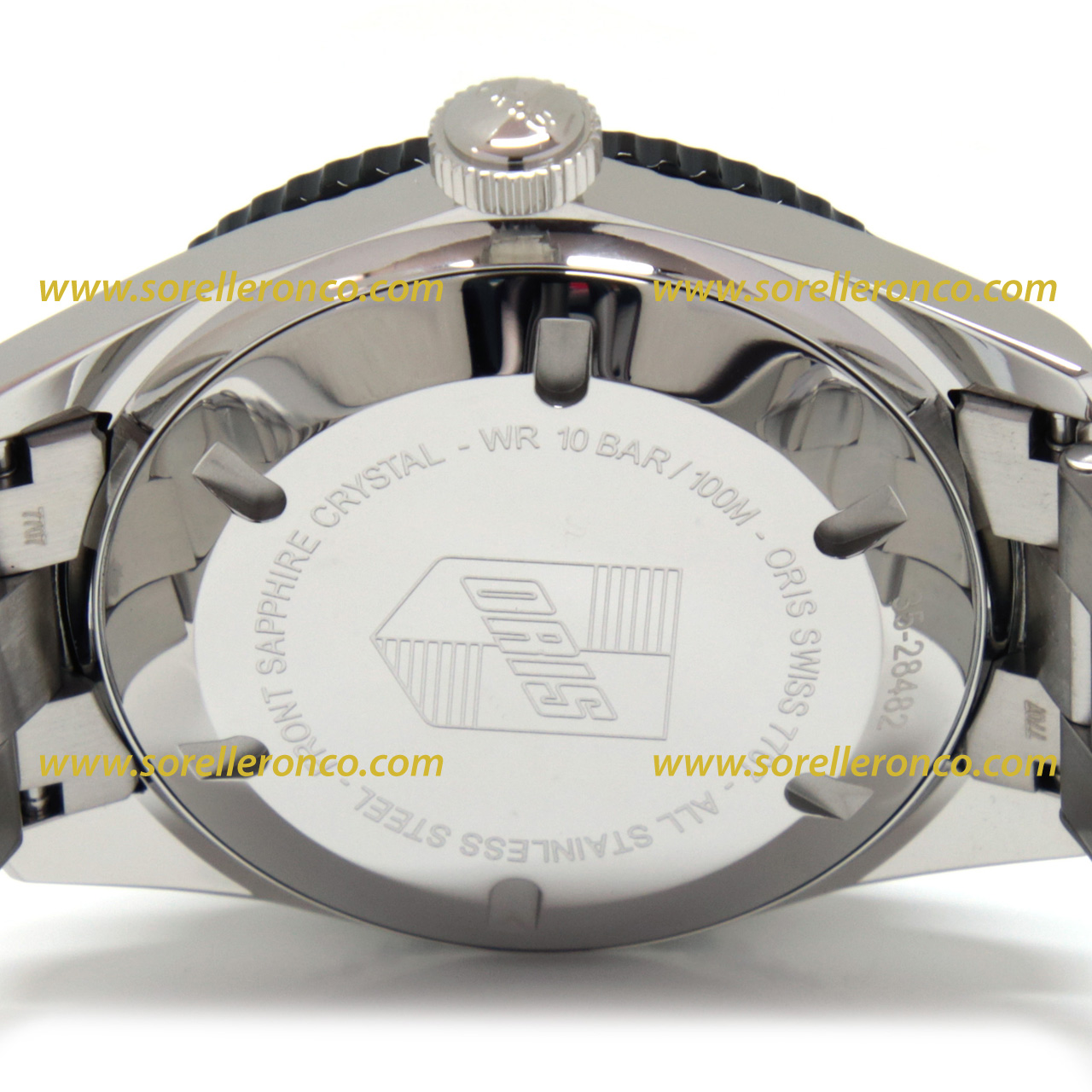 Movimento Automatico calibro Oris 733, data a ore 6. Riserva di carica di 38 ore.